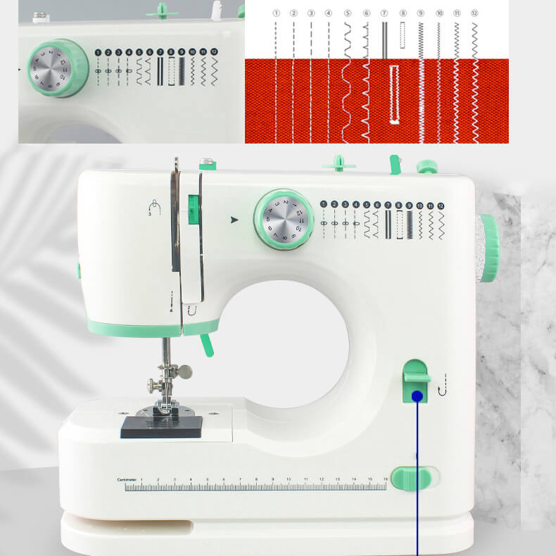 Velg mellom 12 forskjellige sting som passer til ulike stofftyper og dekker dine daglige sybehov.